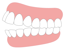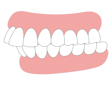 上顎が下顎に比べて 前に出ている状態を指します。遺伝的要因のほかに、指しゃぶり・爪かみ・唇噛み・口呼吸になどの習慣が関係することがあります。